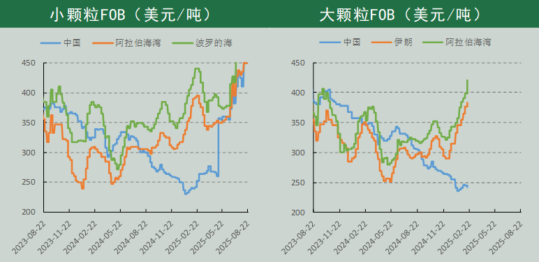 截止到8月22日,小颗粒中国FOB价报450美元/吨,周环比持平;波罗的海FOB报价450美元/吨,周环比持平;阿拉伯海湾价格510美元/吨,周环比持平;东南亚CFR报价452.5美元/吨,周环比持平。截止到8月22日,大颗粒中国FOB价报460美元/吨,周环比持平;埃及大颗粒FOB价格497.5美元/吨,周环比持平;阿拉伯海湾大颗粒FOB价格455美元/吨,周环比持平;波罗的海大颗粒FOB价格451.5美元/吨,周环比持平;东南亚CFR报价462.5美元/吨,周环比持平;美湾FOB报价437.5美元/吨,周环比持平。